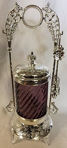 Pickle Castor w/ Tongs & Glass Insert - Old Fashion Victorian Style (Amethyst Spiral) through an online shopping site.