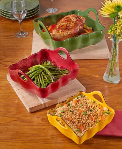 Product Highlight The Lakeside Collection Set of 3 Multi Color Handled Bakers